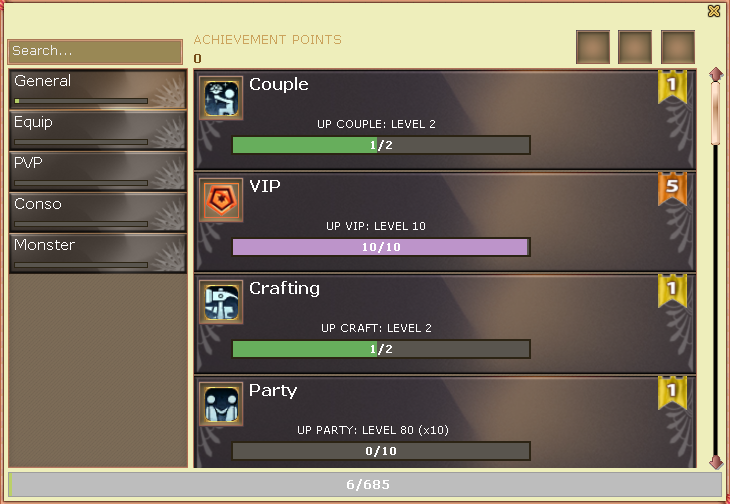 Achievement Categories